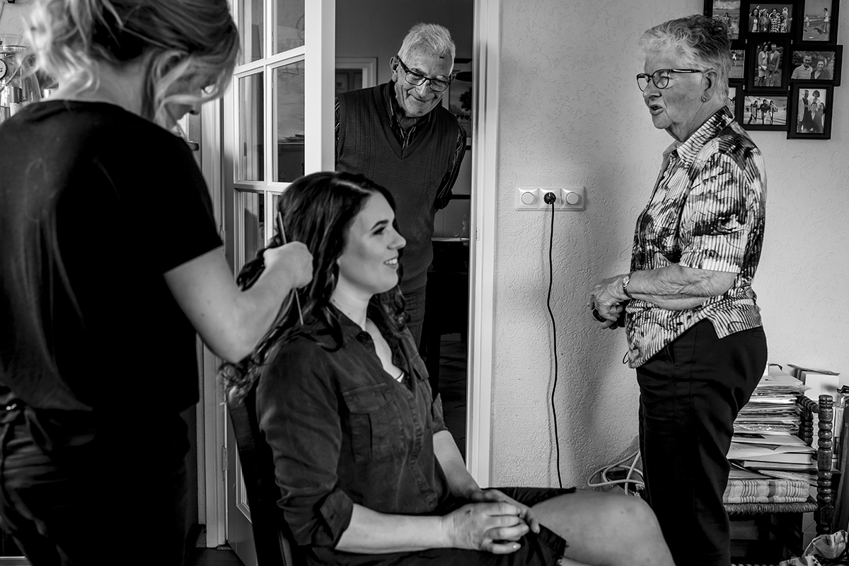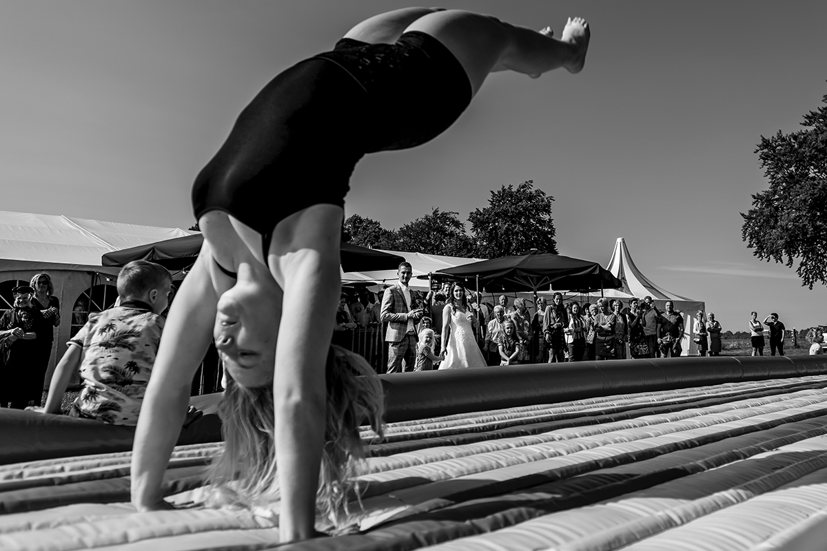 Wij hebben al veel bijzondere locaties mogen zien, maar deze trouwlocatie is wel heel uniek. Danielle en Marco trouwden afgelopen mei op het voerpad in de koeienstal. Dit was een hele bijzondere ervaring. Terwijl de ceremonie plaatsvond stonden de koeien rustig te eten, lagen te rusten in de boxen en een enkele koe werd gemolken in de melkrobot. Hoe geweldig is het dat de koeien hun eigen ding doen, terwijl er ondertussen het JA-woord klinkt! En niet alleen de koeien waren hier getuigen van, maar ook alle familie, vrienden en vele kinderen. De hele dag hing er een heerlijke ontspannen sfeer, kinderen op luchtkussens, spelend in de zandbak, gasten heerlijk aan de borrel, leuke stukjes van de kinderen en een heerlijke zonnige barbecue.